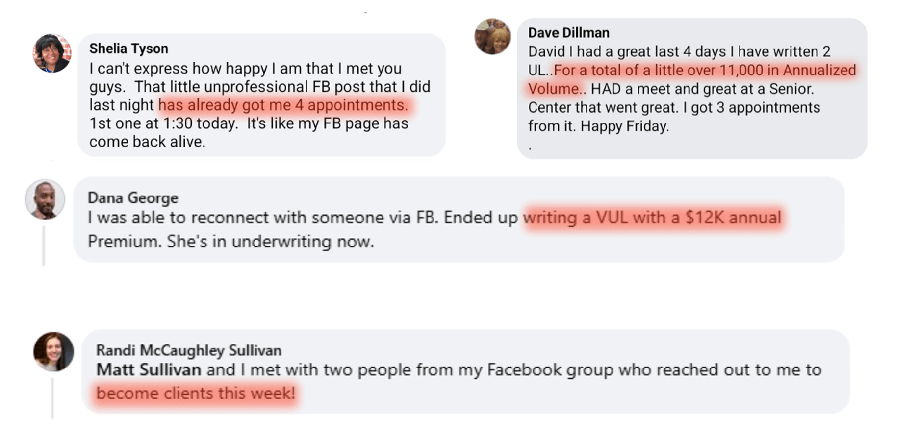 1 of the leads i had a great fact finding appt with them this week. Will be quoting them over the weekend and hopefully closing next week. Next is a Medicare lead. - David K.